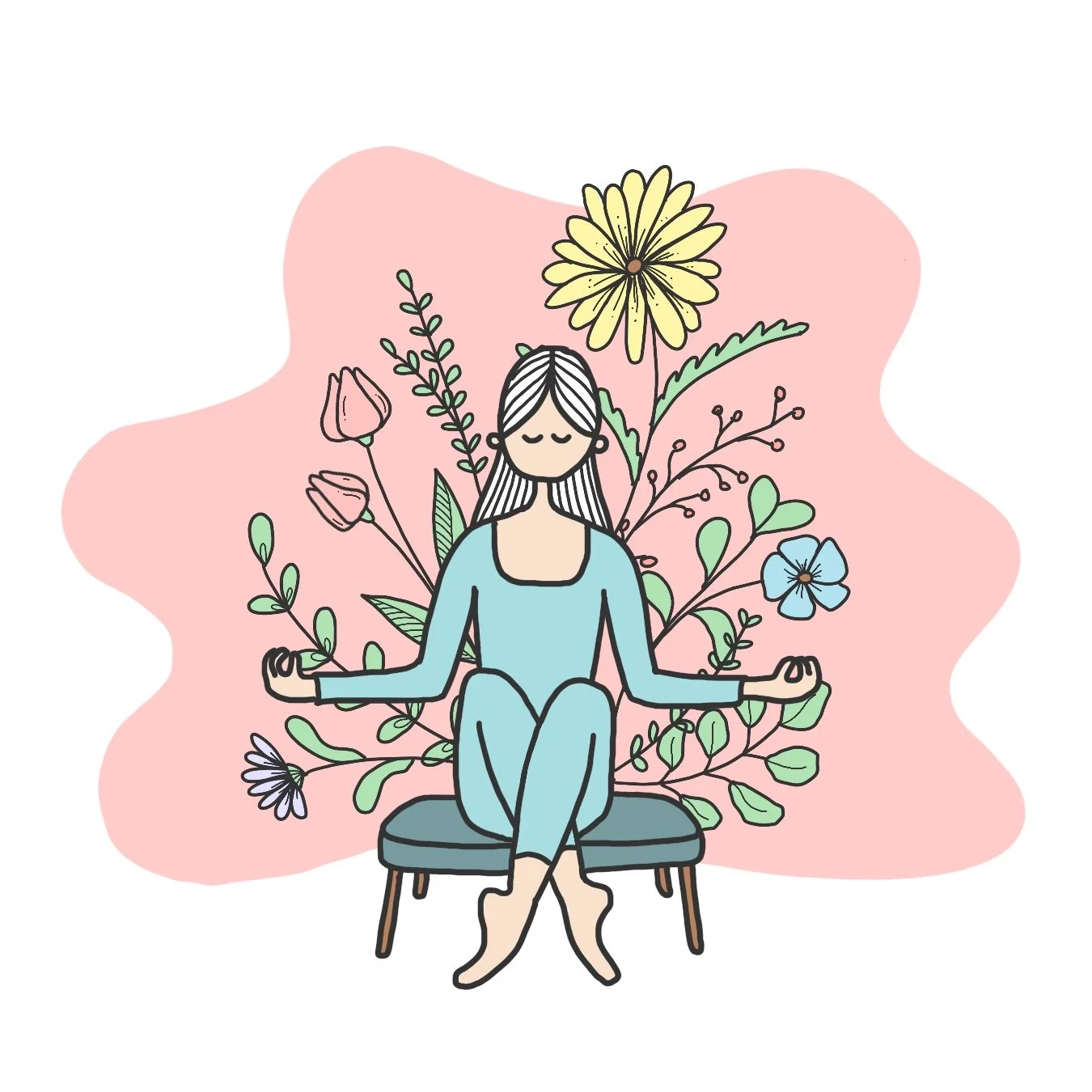 Teal. White hair. Botanical.